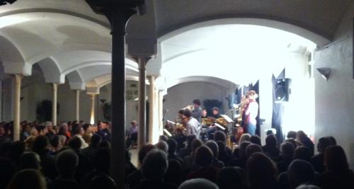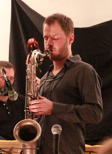 Große Besetzung mit voller Wucht und feinen Tönen – mit zehn Mann war das Max von Mosch Orchestra aus allen Ecken und Enden der Republik angerückt, Instrumente wie Fagott, Tenor- und Baritonsaxophon, Posaune, Flügelhorn im Gepäck. Der Australier Adrien Mears hatte auch sein Didgeridoo (s.u.) dabei.
