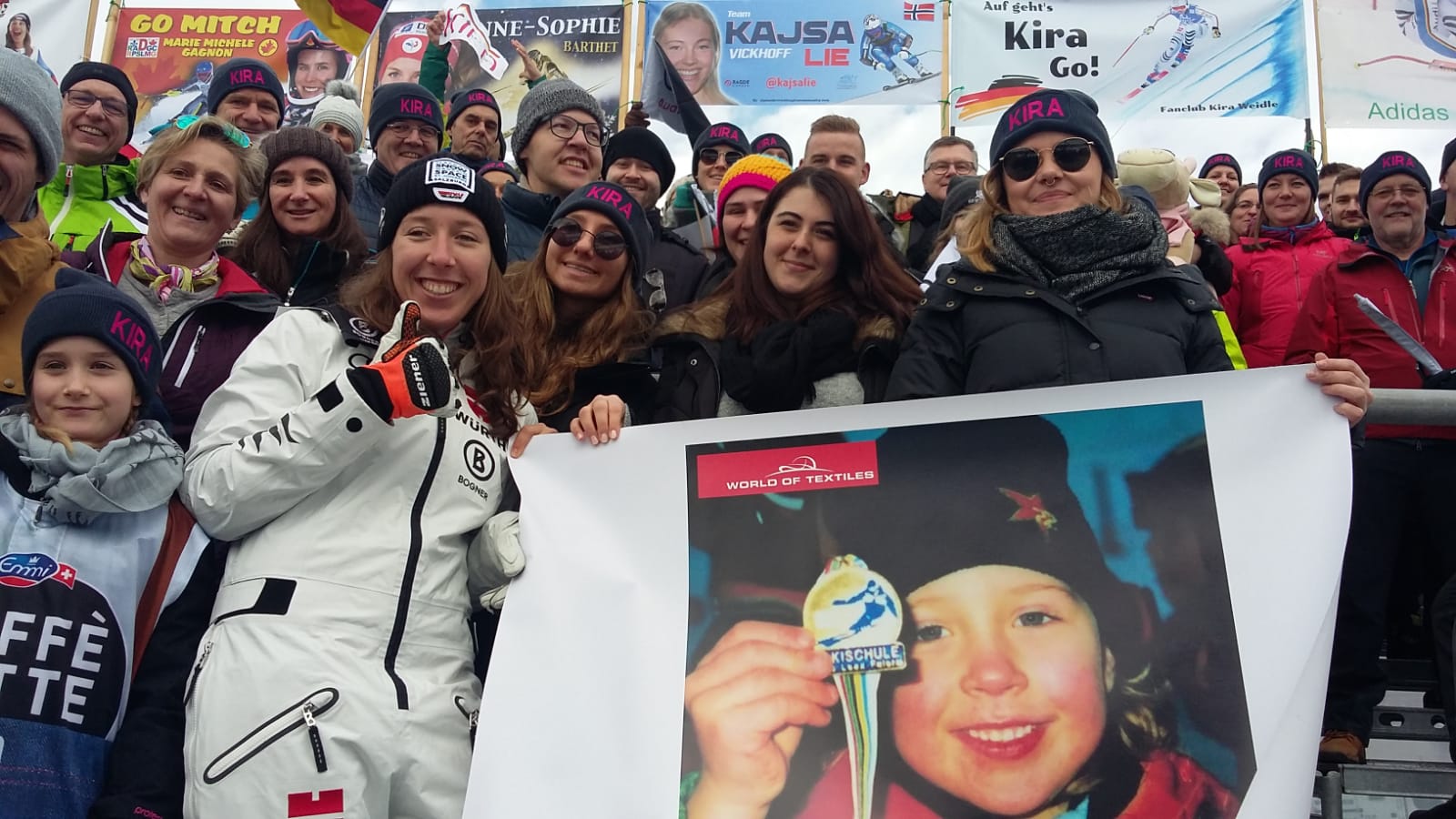 Wieder organisierten ihre Starnberger Freunde die gemeinsame Anreise für die Fans. Kira besuchte das Starnberger Gymnasium, bevor sie auf das Sportinternat in Oberstdorf wechselte. Die Fans halten ihr seit Jahren die Treue – und es hat geklappt: Mit 0:54 Rückstand auf den ersten Platz hat Kira einen Treppchenplatz erobert. Sie wurde Dritte beim heutigen Weltcuprennen in Garmisch-Partenkirchen, das um 10 Uhr begann. Die Kandahar-Strecke für die Damen ist 2,9 km lang – die Herren müssen 400 m weiter fahren.