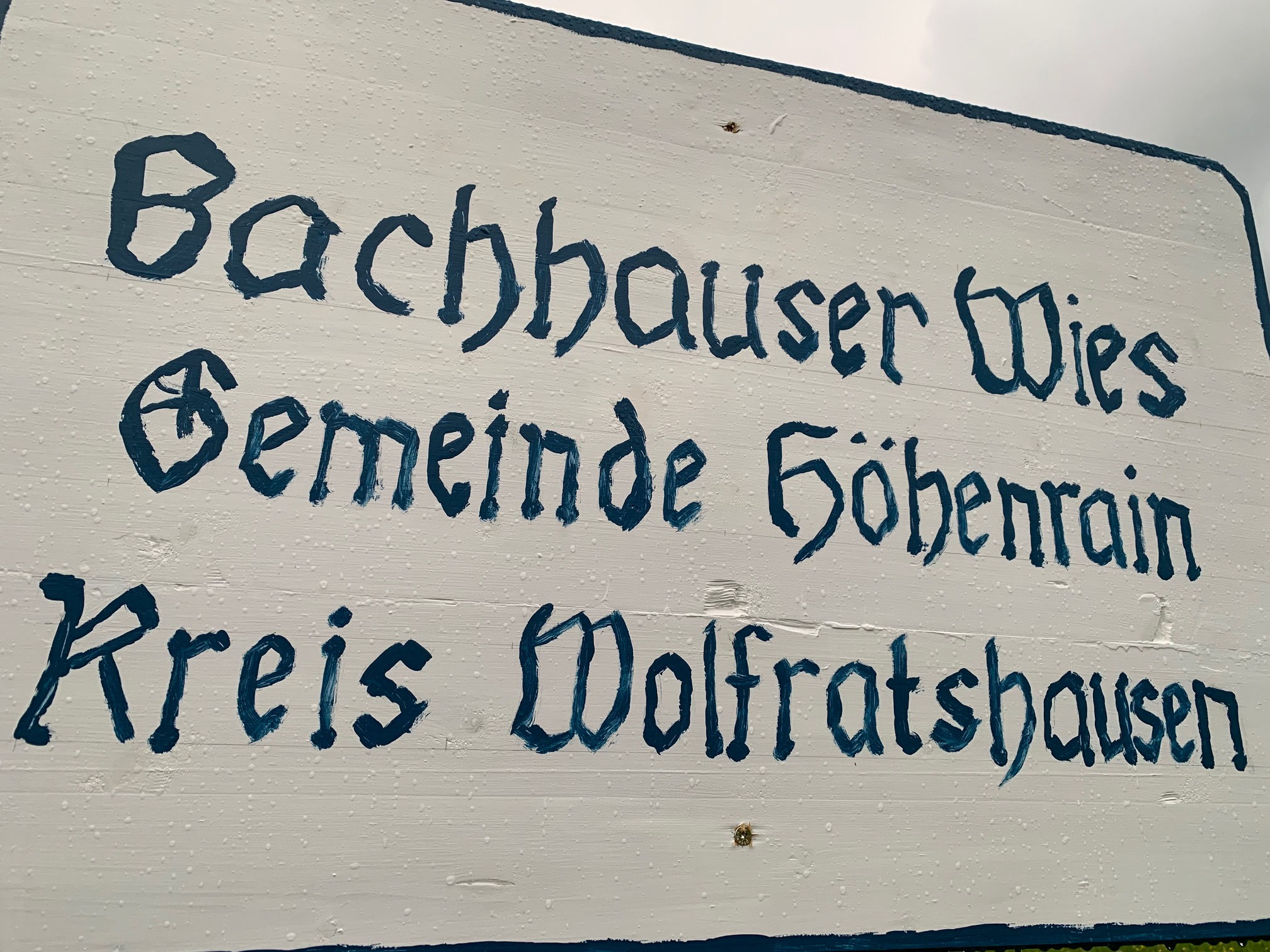 Klare Worte finden sich auf der neuen Ortstafel von Bachhauser Wies. Am helllichten Tag wurde das bestehende Ortsschild entfernt und durch ein selbstgemaltes ersetzt. Neue Information: Das alte war offenbar umgefahren worden.