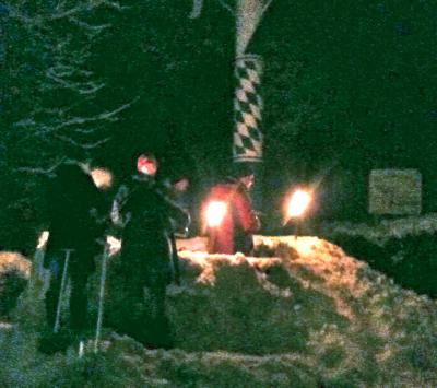 Bald-Wirt Rico Müller und seine Blazena nächtens bei der Jugend-Spontan-Weihnachtsfeier am Maibaum