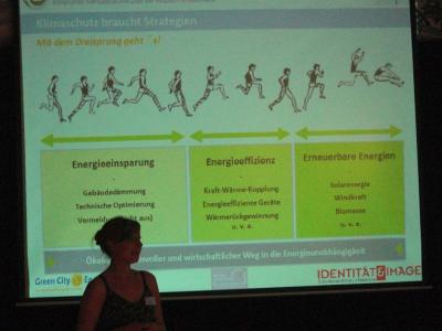 Barbara Schärfl von architektur&energie analysierte die Situation in Berg und präsentierte energierelevante Daten. So wurde etwa an Zahlen demonstriert, wie viel Öl gespart werden könnte, würde nur noch nach Passivhausstandard gebaut. Sie gab auch Tipps für energetische Sanierung, die Bauleitplanung und für die Einrichtung von Gewerbegebieten.