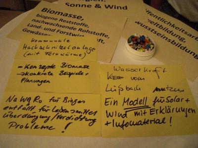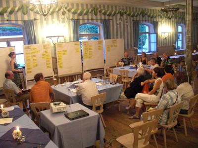 Schließlich waren die Bürger gefragt. Alle Ideen wurden auf gelbe Zettel notiert, neun Themengebieten zugeordnet und einzeln diskutiert. Die Dokumentation finden Sie demnächst hier: http://www.klimaregion-fuenfseenland.de