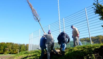 … die Firma Kalinke spendete Maschinen, Know-how und Logistik, und ein Baumpate wollte sogar persönlich anwesend sein, als sein Baum heute am Wall des neuen MTV-Trainingsplatzes gepflanzt wurde.