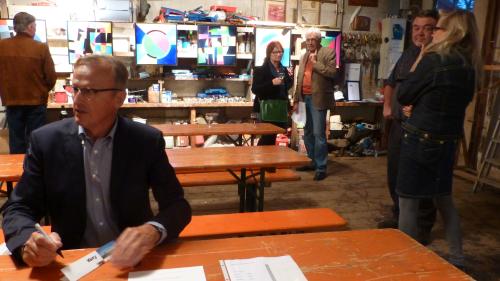 Die obigen Aufnahmen stammen von einer Art Vor-Vernissage, die Volker letztes Jahr in der Bootswerft Simmerding veranstaltet hat. Ein nicht geringer Anteil seiner Gemälde wurde dabei schon verkauft.