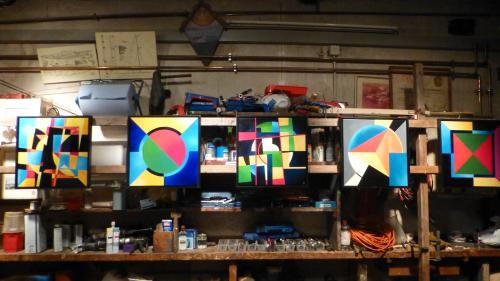 Volker, Blog-Lesern auch als Visionär der Ortsplanung bekannt, malt gleichzeitig realistisch (z.B. Berge, Kühe, Landschaften) oder auch abstrakt.