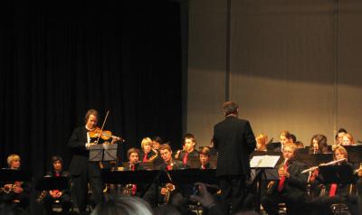 Mit dem Kulturpreis 2007 hatte Herr Landrat Roth vorher den weltbekannten Solisten Prof. Ingolf Turban für seine vielfältigen musikalischen Leistungen ausgezeichnet. Mit Stücken von Fritz Kreisler und Johann Sebastian Bach zeigte er sein herausragendes Können. Am gemeinsamen Auftritt von Prof. Turban und Big Band mit Geige, Blasinstrumenten und Schreibmaschinen mit „The Typewriter“ von L. Anderson/H.v.Heide hatten die Schüler und Schülerinnen sichtlich Spaß.