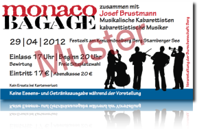 Um 20 Uhr im Berger Festzelt dann Josef Brustmann mit der Monaco Bagage – Karten gibt es an der Abendkasse zu 20 €.