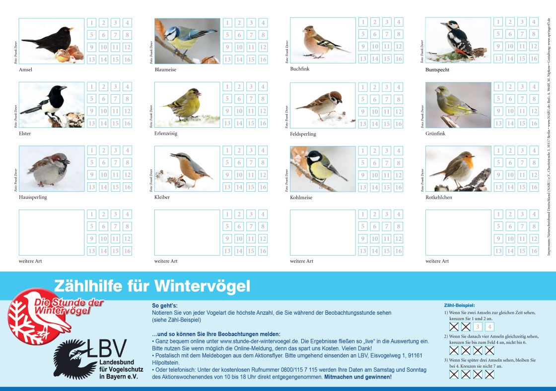 Eine Zählhilfe und alle weiteren Informationen finden Sie auf der Homepage der “Stunde der Wintervögel”:
