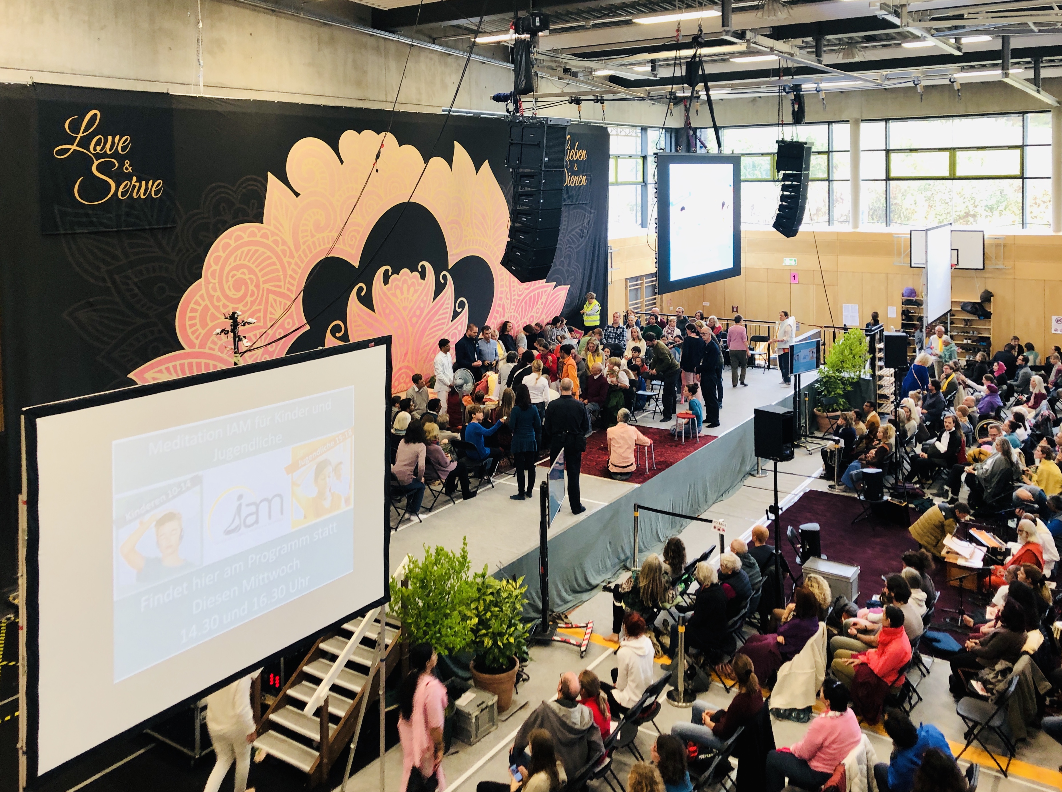 Die Inderin Amma zieht auf ihrer “Embracing the World”-Tour durch Europa Tausende von Menschen an. Sie wird gerne als “spirituelle Führerin” bezeichnet, aber Spiritualität und Ethik sind nur einer ihrer Schwerpunkte. Ammas Traum: Nahrung, Obdach und ein angstfreies Leben für alle Menschen. Jeder Mensch sollte einen Teil seiner eigenen Lebenszeit aufwenden, um Bedürftigen zu helfen. So werden auch alle Stationen auf ihrer Tournee mit Hilfe ehrenamtlicher Helferinnen und Helfer organisiert – und dies vorbildlich. Trotz des großen Ansturms herrschen – wie bereits im letzten Jahr – Ruhe und Gelassenheit. Die meditativen Gesänge, Meditationen und Musik tragen ihren Teil dazu bei.