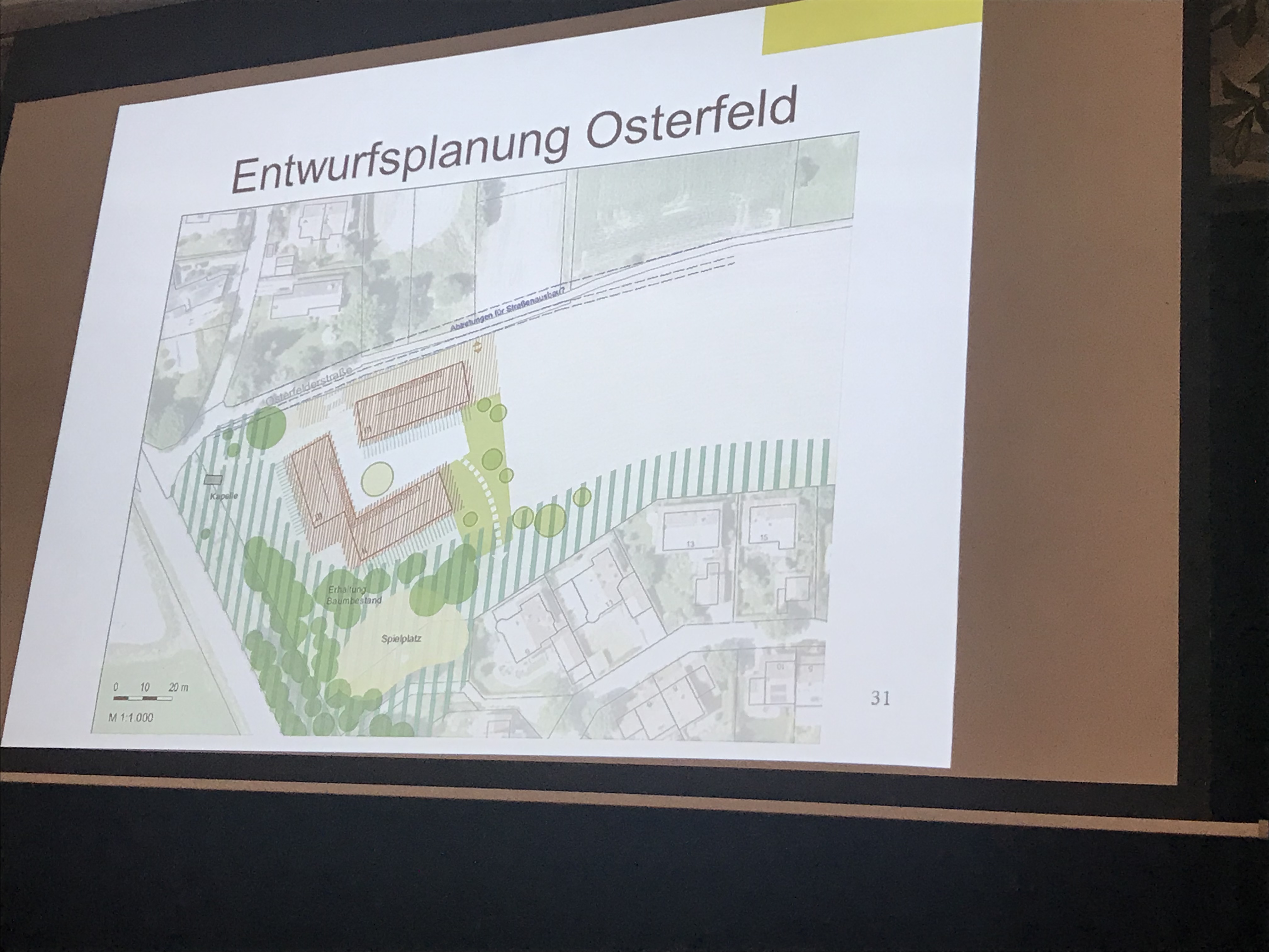 Dann erläutert BGM Monn das Projekt an der Osterfelderstraße – Wohnungsbau für Berger Bürger … erstmals werden auch Bilder der Grundrisse gezeigt, die selbst im Gemeinderat nicht öffentlich waren.