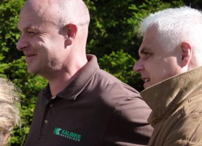 Florian Mond (rechts im Bild) gut gelaunt zu Besuch bei der Höhenrainer Firma “Kalinke Maschinen” und bei QUH-Vize “Boller” Kalinke