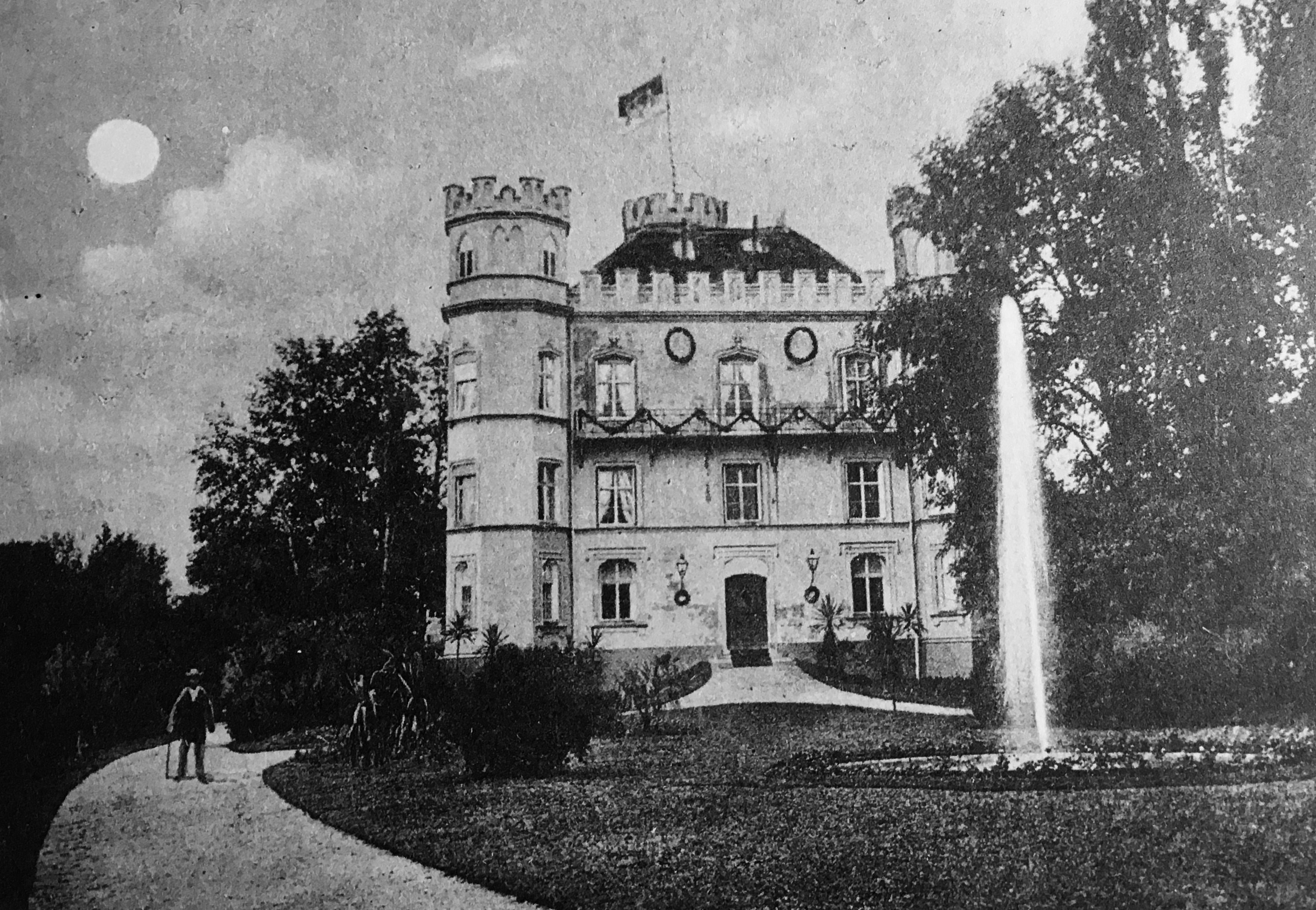Alte Postkarte von Schloß Berg mit nich ganz korrektem Mond (Privatsammlung Berg)