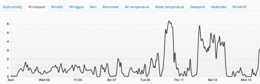 Zusätzlich gibt es einen Klick weiter Wetterdaten, von denen wir teils gar nicht wissen, was sie besagen (What the hell is a “Dewpoint”?). Und Temperatur- oder gar Windmessungen über jeden beliebigen Zeitraum (Tag, Monat, Jahr, 5 Minuten) gibt es auch und alles anders als bei Sachverständigen ganz umsonst und für jeden jederzeit einsehbar: