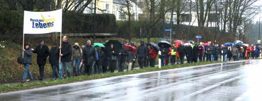 Bei sehr “originalgetreuem” Wetter eröffnete Pfarrer Habdank die Veranstaltung mit dem Hinweis, das der Termin zwischen Tod (Karfreitag) und erneutem Leben (Ostern) sprechend gewählt sein. Mit den Worten “wer schweigen möchte, möge schweigen, wer reden möchte möge reden” und einem kurzen Gebet setzte sich der Zug, an der Spitze auch die Bürgermeister von Berg (Monn, Link) und Münsing (Grasl) in Bewegung Richtung Schloss Unterallmannshqusen, wo um 17 Uhr die Abschlußveranstaltung stattfinden wird. Zu den Hintergründen des Marsches siehe die unten stehenden Artikel: