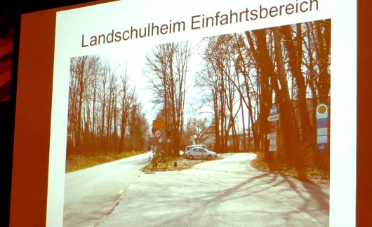 Landschulheim Einfahrtsbereich in Planung: Bisher gibt es keine klare Verkehrsführung und keine ausgewiesene Bushaltestelle. 2016 könnte sich das ändern, wenn sich alle Zuständigen einigen. Die Parksituation wird durch die geplante Parkgarage der Kliniken entschärft. Noch liegt der Gemeinde allerdings keine Planung vor.
