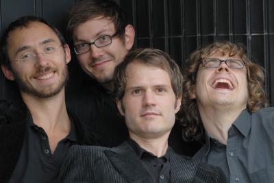 Zum ersten Mal aufgefallen ist uns das Jazz-Quartett 2007 bei einem rammelvollen Konzert in der Münsinger Pizzeria “Pinocchio” ( /?p=4516 ). Da spielte, die aus einer Schülerband hervorgegangene Band, die mittlerweile als DIE Hoffnung des jungen deutschen Jazz gilt, schon seit 7 Jahren zusammen. Mittlerweile haben sie weltweit Preise eingeheimst und auf den größten Jazzfestivals der Welt gespielt. Einmal im Jahr kommen sie zurück ans Ostufer in ihr Wohnzimmer, den “Hinterhalt” in Gelting und spielen da ihre Coverversionen von Simon & Garfunkel oder die Suite für den Kosmonauten Juri Gagarin. Die QUH sprach mit Schlagzeuger Andi Haberl, der aus Holzhausen kommt, im letzten Jahr im Berger Marstall mit seiner anderen Band “The Notwist” heimlich gastierte und außerdem noch auch bei dem Berliner Avantgarde-Jazz-Orchester “Andromeda Mega Express Band” das Schlagzeug auf seine unwiderstehlich mitreißende Art bearbeitet.
