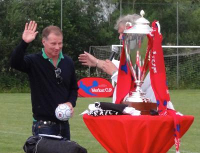 Gimme five: Schirmherr und Sieger-Papa Stefan Reuter mit dem Pokal