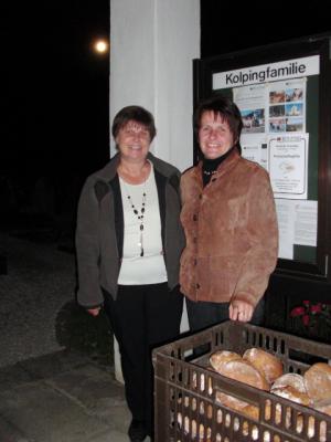 Bei Vollmond: Elke Diehl-Skell und Helga Müller vom Vorstand der Kolpingsfamilie verkaufen Minibrote