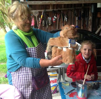 Roswitha Kaissling mit frisch gebasteltem Monster (mitte)