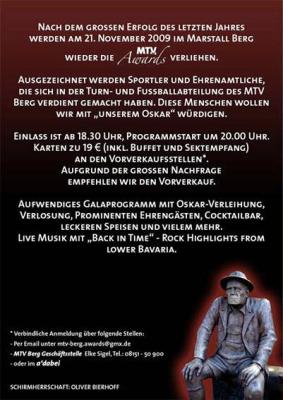 Wir erinnern uns: Das war jene legendäre Veranstaltung im letzten Jahr, die als “Party des Jahres” Furore machte. Jener Abend, an dem sich Schirmherr Oliver Bierhoff von der Bühne herab bei seiner Frau entschuldigte, die auf seinen Zuruf “Wir gehen doch nur zum Sportverein” ihre Jeans angezogen hatte. Ganz Berg hingegen (inklusive Schlagerstars, Bundestagsabgeordnete und Nationaltorwart) in Abendgarderobe, Frack oder höchstens im kleinen Schwarzen erschienen war, um den ehrenamtlichen Mitarbeitern des MTV zu huldigen. Also: Rasch Karten reservieren und die Abendkleider aus der Mottenkiste!