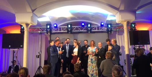 Temporeich und amüsant führten Carin C. Tietze und Christian Kalinke durch den Abend. Die Gäste, dem Anlass gemäß festlich gekleidet, genossen die selbstironischen Einsprengsel auf Bühne und Leinwand sowie die angenehme Taktung des Abends mit zwei Pausen.