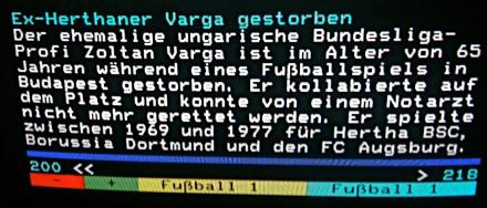 Was die ARD (und auch Wikipedia) nicht weiß: Zoltan Varga war nicht nur Nationalspieler von Ungarn und Profi bei Vereinen wie Hertha BSC, Ajax Amsterdam, Aberdeen und Dortmund (und auch in den Bundesliga-Bestechungsskandal verwickelt), sondern vom Sommer 1994 bis Herbst 1996 fast 2 1/2 Spielzeiten Trainer des MTV Berg.
