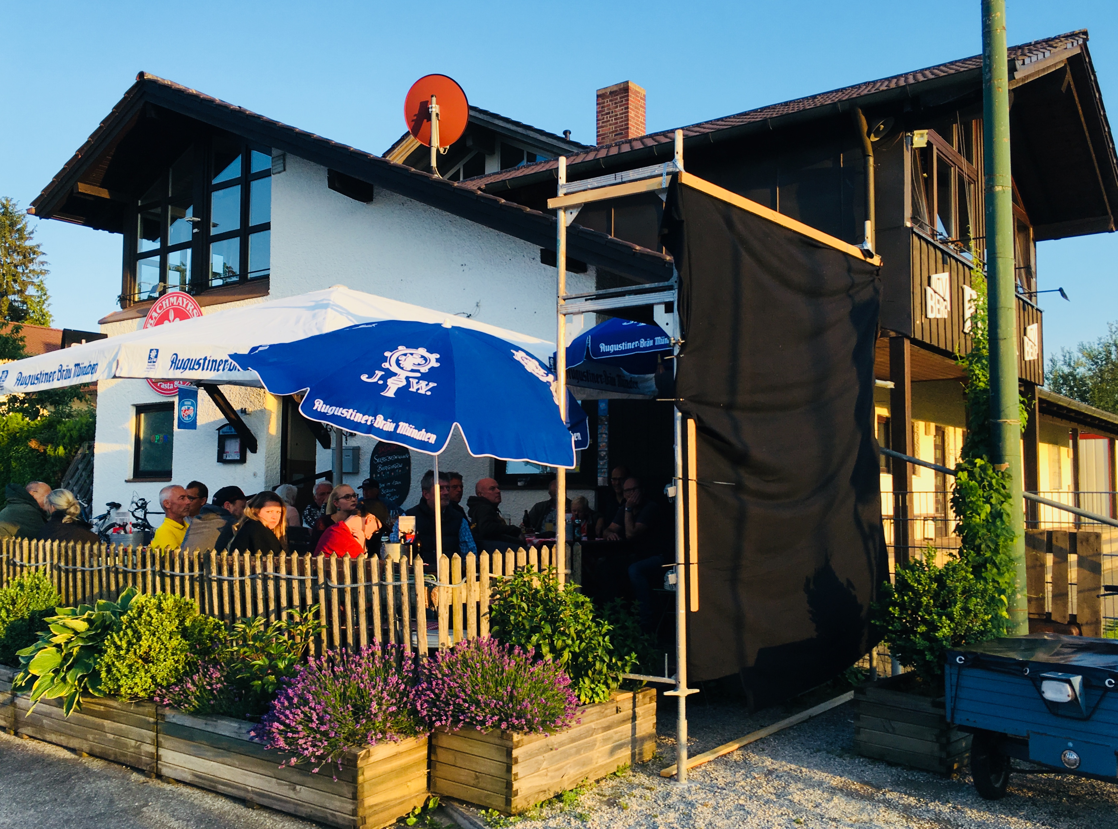 Und damit zum einzigen Neubauprojekt der Woche, das auf einhellige Begeisterung stieß: “Dada” Bachmayer hat die Terrasse des MTV-Vereinsheimes “Dadabei” mit einem Gerüst zum besten Berger Public Viewing Areal ausgebaut, das bei großen Spiel Portugal gegen Spanien bereist eine ebensolche Premiere feiern konnte: der Sonntag kann kommen!