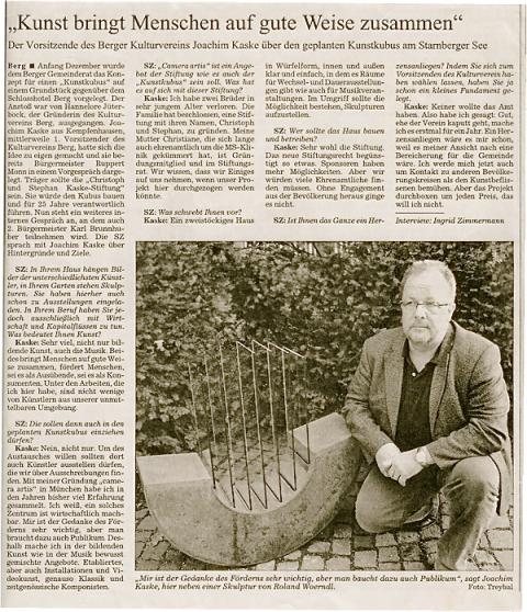 Um den Ausstellungsbetrieb aufrecht erhalten zu können, sucht Bürgermeister Pfaffinger aus Starnberg übrigens händeringend noch Mäzene. Umso erstaunlicher, dass man in Berg, wo man solche hätte, mit diesen einfach nicht ins Gespräch findet. Vgl. dazu das folgende SZ-Interview mit dem hier gerade vorgestellten QUH-Kandidaten Joachim Kaske.