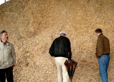 Zu sehen sind die GR Galloth (von vorn) und Brunnhuber (rechts) und ein Unbekannter (beide von hinten), die sich in Furth, der energiepolitisch fortschrittlichsten Gemeinde Bayerns (QUH-Bericht siehe unten), beim dortigen Grünen-Bürgermeister Gewies u.a. den örtlichen Hackschnitzelberg zeigen ließen. Folgender Text lag als “Pressetext” bei: