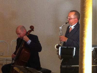 Etwa 60 Gäste kamen zum Barockabend in den Marstall. Gewohnt unprätentiös führte Sebastian Hess in die Musik ein – zu Beginn bedankte er sich, dass sich – trotz Wies’n – doch so viele Gäste zur Berger Uminterpretation des “Italienerwochenendes” eingefunden hatten, freute sich über die dem Barock sehr entsprechende Konzertsituation und erklärte im weiteren Verlauf Plattis Verhältnis zu Würzburg, den basso continuo (“Ich agiere da eher wie ein Jazzpianist” – Axel Wolf) und Tiepolos Deckenfresko im Treppenhaus der Würzburger Residenz – auf dem das einzig bekannte Porträt Plattis zu sehen ist.