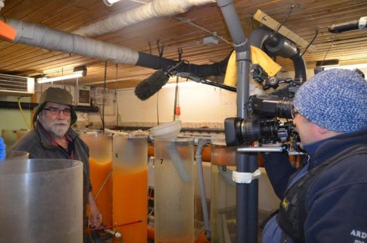 Die Sibichhauser Journalistin Monika Sarre-Mock und ihr Team fuhr mit Fischer Johann Schuster aus Allmannshausen auf den See. Der langjährige Chef des Allmannshauser Fischbruthauses zeigte, wie die Millionen von Fischeiern gepflegt werden müssen.