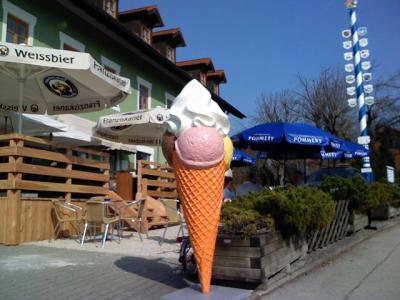 Walter Gusterer, früher persönlich für die “Wirtschaftsförderung” in Berg zuständig, hat in Percha jetzt selbst eine “Wirtschaft” aufgemacht. Zusammen mit seinem Kompagnon Roland Walter betreibt er beim Maibaum in Percha (Buchhofstr. 3) die “Eis Lounge”. Der Name ist Programm: Klassisches Eis und moderne, “loungige” Sitzmöbel. Am nördlichen Ostufer ist dies – schon aus Mangel an Konkurrenz – die derzeit beste Eisdiele. Die Kugel Eis kostet 80 Cent. Besonders gefallen hat uns vor allem die original importierte Lemonsoda in der Dose, der vorzügliche Espresso und die Kindereis-Portionen, die nach den Nachkommen der beiden Inhaber Laurina, Leopoldo, Luis und Rico heißen (ab 2,90 €).