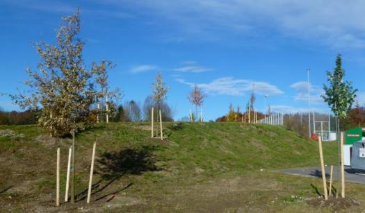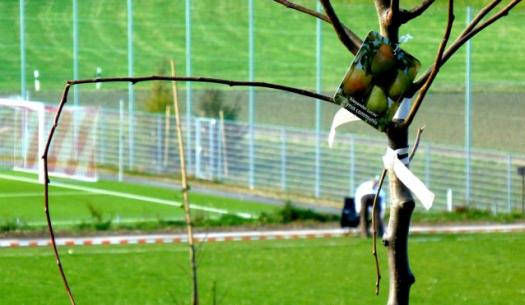 … dann kam Oberpflanzer Boller Kalinke noch auf die Idee, das bisher brachliegende Gelände hinter dem Bolzplatz ganz fußballfremd, aber umso umweltgerechter im Handstreich in eine Streuobstwiese mit heimischen Obstbäumen umzuwidmen …