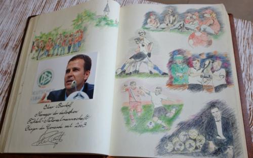 Sabine Beck (links im Bild) gestaltet wieder die Seite im Goldenen Buch, auf der sich Oliver Bierhoff heute eintrug.