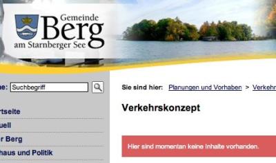 “Hier sind momentan keine Inhalte vorhanden” – Selbstauskunft auf der Internetseite der Gemeinde Berg