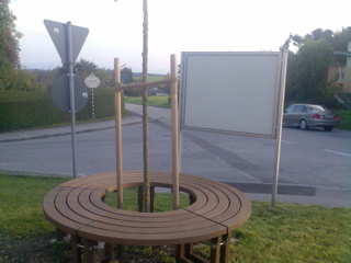Das ist ein Engagement, wie es jede Gemeinde braucht, wenngleich kritisch angemerkt werden muss, dass der Bergblick, den man von dieser Ruhebank zwischen zwei Straßen hätte, durch die Rückansicht der Mitteilungstafel der Gemeinde und diverse Verkehrschilder etwas gemindert wird.