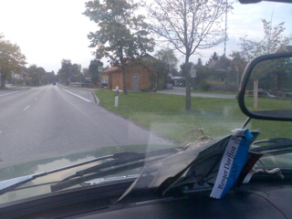 Zur Mittagszeit etwa, wenn die Mütter ihre Kinder von der Schule abholen, dann ist der – insbesondere bei nächtlicher Prachtbeleuchtung – etwas zu bombastisch geratene Parkplatz am Ortseingang (im Bild bei Nummer 1) der Platz, wo sich alles trifft. Zu Füßen des abreisewilligen Oskar Maria Graf sammeln sich die Mütter und verbreiten wartend die neusten Nachrichten aus der Gemeinde. Ein Jahrmarkt der manchmal etwas zu großen Karossen … aber so ist das halt bei uns daheim. Um halb Zwei allerdings ist der Spuk vorbei. Dann ist es dort so leer, wie auf dem Foto oben (wie immer von unserem fliegenden Photographen HP Höck).