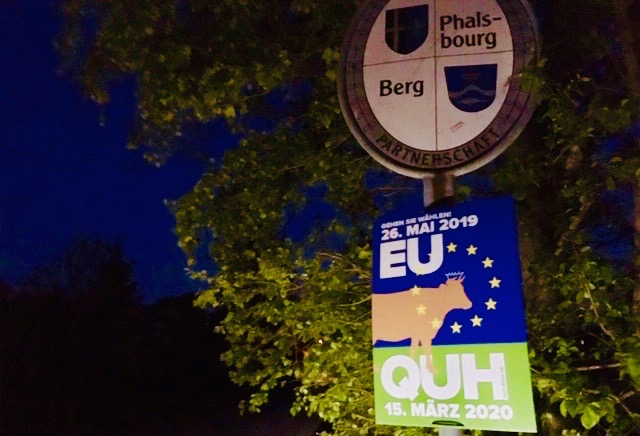 Die QUH steht – anders als Parteien wie “Liebe” (Listenplatz 30), “Familie” (Liste 14) oder “Die Direkte” (Liste 24) – erst in gut 10 Monaten zur Wahl, hat aber bekanntermaßen eine eindeutige Wahlempfehlung ausgesprochen und sie auch plakatiert. Sie lautet: “Gehen Sie wählen!” Wie sonst nur die CSU wirbt sie auch mit dem europäischen Sternenkranz.