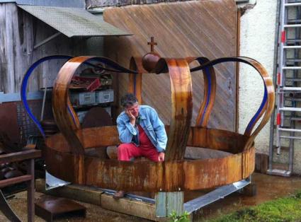 Zeitgleich laden die Berg/Ickinger Künstler dann traditionell (am 9. & 10.7. tagsüber) in ihre Ateliers. Gelegenheit, zum Beispiel mit Roman Wörndl in Aufkirchen über seine Krone am Kreisverkehr zu diskutieren, die immer noch die Gemüter erhitzt.