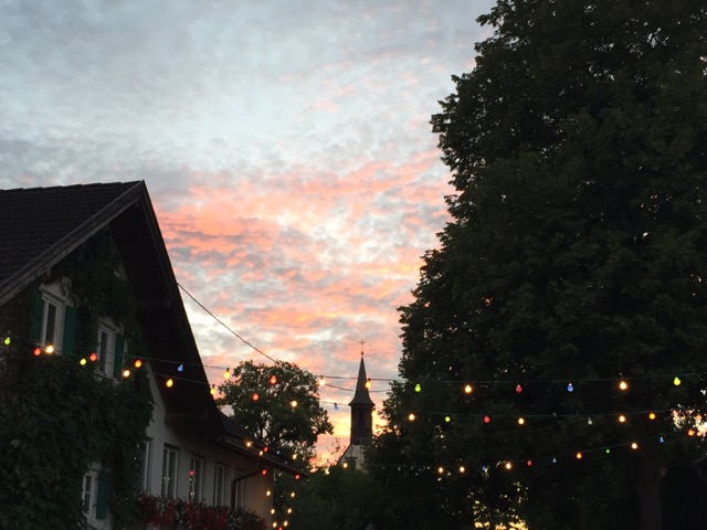 Seit Jahren schon haben sich die Berger Burschen dankenswerterweise entschlossen, keine hochgerüsteten Coverbands mehr auftreten zu lassen, sondern das Dorffest das sein zu lassen, was es ist: ein Treffpunkt von Freunden und Nachbarn in der Mitten ihres Dorfes. So wird es auch heute wieder sein: Die Bachhauser Blasmusik wird spielen. Es gibt eine Lichterkette, Kaffe vom Frühtau, gute Paella vom Kramerfeicht, “gruid werd”, es gibt Biertische und das zum Tisch passende Getränk. Dieses kommt dieses Jahr aus Höhenrain: zum ersten Mal will das Starnberger Brauhaus seine Volksfesttauglichkeit beweisen. Um 15 Uhr geht es los … und dann geht es dahin.