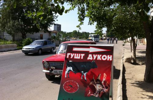 Aus der niemals endenden Serie “Qühe dieser Welt, vereinigt Euch” – heute eine Kuh aus der Seidenstraßenstadt Samarkand in der ehemaligen zentralasiatischen Sovietrepublik Usbekistan: