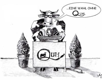 Und weil Berg eine Bürgermeisterin braucht, trifft sich die QUH und wer mit ihr reden mag, um 19.30 Uhr im extra für uns geöffneten legendären “Waldcafé” auf der Rottmanshöhe zum Stammtisch. Es geht um eine Wahl. Oder wie unser Karikaturist es sieht: