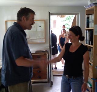 Sebastian Heinsdorff. Letztjähriger Preisträger des QUH-Atelier-Preises. Fällt Ihnen auf dem Photo etwas auf? Na? Links auf dem Fensterbrett!