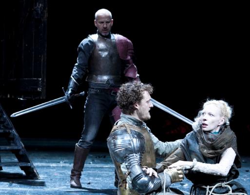 Marcus Calvin (links mit Schwertern), Felix Rech (als Friedrich Wetter, Graf vom Strahl) und Sunnyi Melles im “Käthchen von Heilbronn”