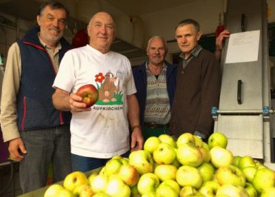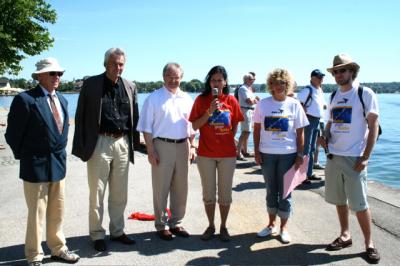 Im letzten Jahr: In der Mitte Dr. Gabriele Kröner, die das Projekt koordiniert, mit den Herren Frey und Pfaffinger sowie den Moderatoren Susanne Rohrer vom Bayerischen Rundfunk und Max Mendius vom MRSV, die auch dieses Jahr die Moderation übernehmen werden. Hoffentlich wird der Himmel wieder so blau!