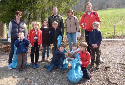 Unterwegs am Ufer: die F2-Fußballer mit Trainer Christian Brunner und Eltern Susi, Markus und Ursel. Der Schiedsrichternachwuchs bestehend aus Max, Maxi und Flo ist schon ein Stück weiter.