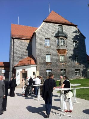 Unter reger Anteilnahme von etwa 70 Gästen, darunter nur acht Berger, u.a. Herr Monn und Herr Pfarrer Wandachowicz, der das Schloss Kempfenhausen nach der Komplettrenovierung mit dem christlichen Segen weihte, wurde zunächst bei Häppchen und Sekt small talk betrieben, dann das traditionelle rote Band durchschnitten und sodann im renovierten Rittersaal die Lobeshymnen auf die beteiligten Architekten, Baufirmen und höheren Beamten der Stadt München gesungen. Wohl auch typisch, dass der einzige wirklich hart arbeitende Beamte, Herr Oliver Materna, der täglich seit über einem Jahr im Schweiße seines Angesichts als Sklaventreiber die Bauleute antrieb, um den komplexen Bau im Zeitplan fertig zu stellen, nur am Rande und als allerletzter erwähnt wurde. Ihm gilt mein eigentlicher großer Respekt. Dann wurden die interessierten Gäste mit Musik durch die Historie der Schlossbesitzer seit dem 14. Jahrhundert geführt. Abschließend gab es wohl noch ein gigantisches Buffet, bei dem Herr Monn und ich leider schon wieder in der recht frustrierenden Gemeinderatssitzung saßen. Der Flügel des Kulturvereins Berg, während der Bauzeit ausgelagert, wird in einigen Tagen in den Rittersaal des Schlosses zurückkehren, um bei Konzerten und Hochzeiten seinen allseits geschätzten Dienst zu erfüllen.