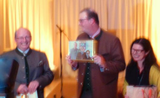 Dann überreichten Andi Hlavaty und Elke Link dem Jubilar ein Geschenk des Gemeinderates, das einigen Blog-Lesern schon bekannt sein dürfte: