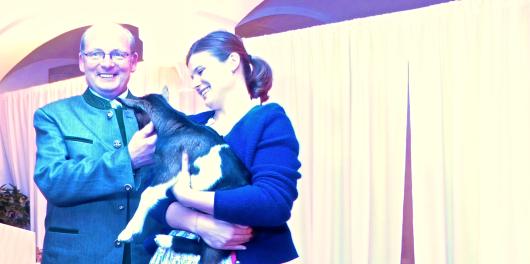 Etwas verspätet hatte sich nur die neue Vorsitzende des Goaßbockvereins, Bernadette Demmler, die dem Bürgermeister stilecht einen kleinen Geißbock schenkte. Den hat er sich sicher schon immer gewünscht!