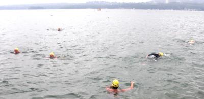 Nach einer ganzen Woche Sonnenschein traf es die Teilnehmer des Starnberger Seeschwimmens heftig: In strömendem Regen durchschwammen sie den See, nachdem sie um 8:45 in Possenhofen gestartet waren.